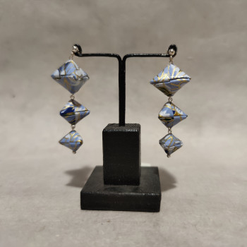 Orecchini pendenti, lunghi 5 cm. Il primo esaedro è largo 2 cm e alto 1,5 cm