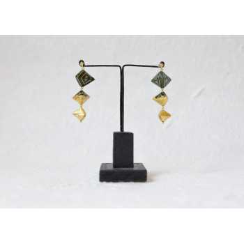 Pendant earrings, 5 cm long. The first hexahedron is 2 cm wide and 1.5 cm high.