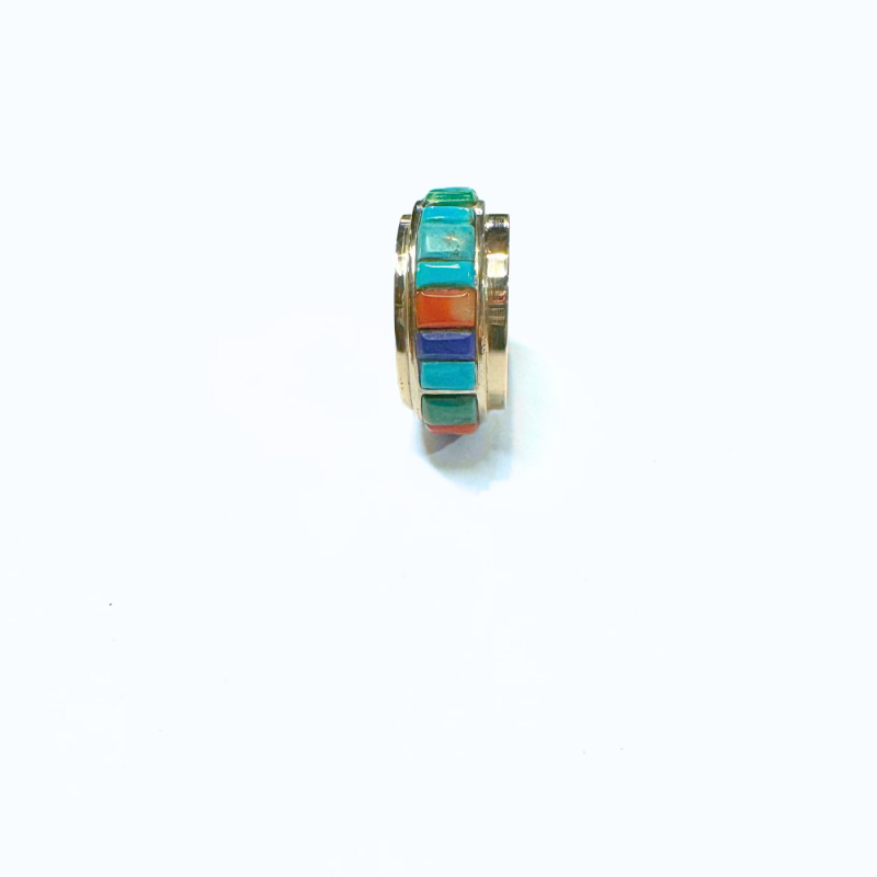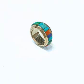 Handgefertigter Ring aus 925er Sterlingsilber mit einem Mosaik aus Türkis, Lapislazuli und Koralle.