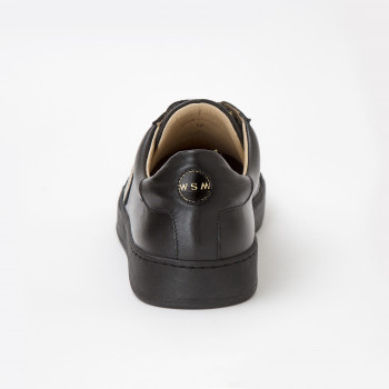 Diese handgefertigten Sneaker aus der Accademia-Linie werden in authentischen venezianischen Labors aus feinem Kalbsleder hergestellt. Die Gummisohle ist vollständig handgenäht und die Innensohle besteht aus echtem Leder. Der Fuß ruht auf einem sehr weichen Fußbett aus Schaumgummi und das Futter des Obermaterials ist vollständig aus edlem Kalbsleder gefertigt. Das zentrale Zierelement, Symbol der Firma WSM, stellt ein Element der Galerie des Dogenpalastes in Venedig dar und wird mit einer goldfarbenen Drucktechnik auf schwarzem geprägtem Leder hergestellt.