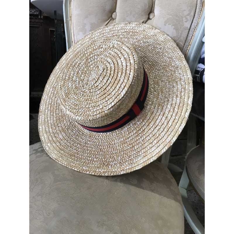 Cappello 'Canottieri' in paglia naturale con nastro bicolore