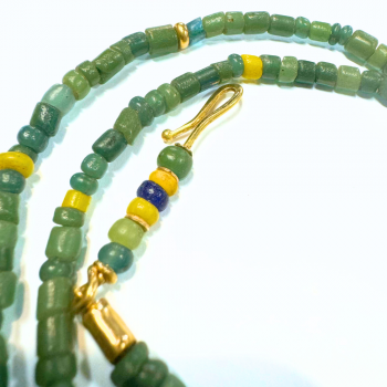Necklace of 'alisee' glass beads from the 1300/1500 DC period with 18-carat gold clasp.
