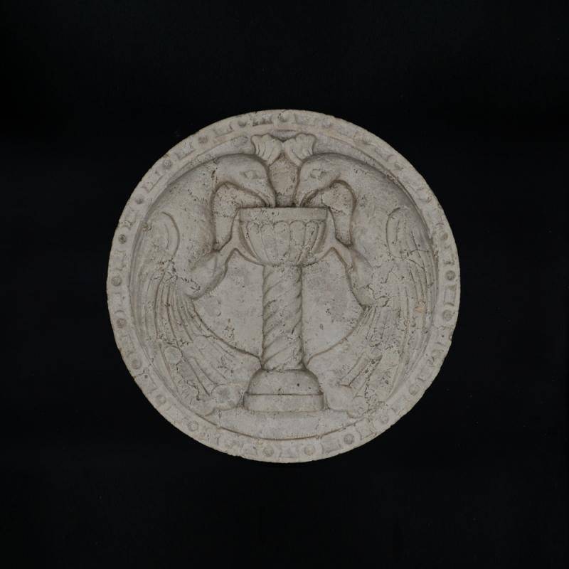Placa de piedra de Istria que representa a dos pavos reales bebiendo en la fuente