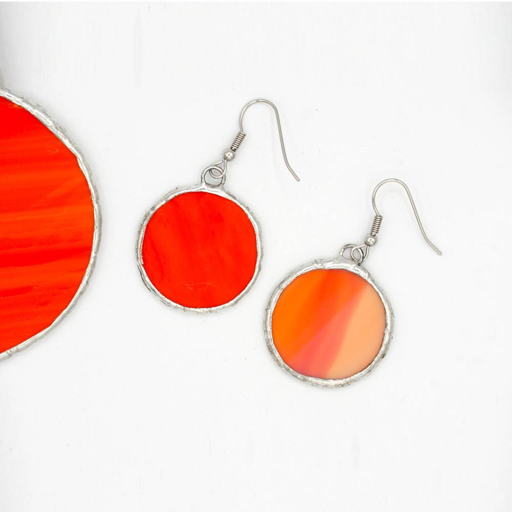 Parure formée par pendentif, boucles d'oreille et bague en tiffany (verre et étain)