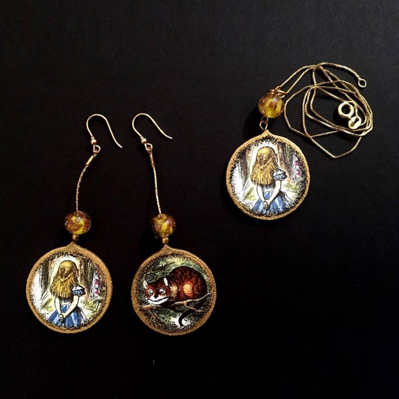 Boucles d'oreille avec pendentif en papier réalisés artisanalement, décorés avec la technique du collage et applications en acrylique. Perles en verre de Murano, (illustrations de Sira Viviani)
