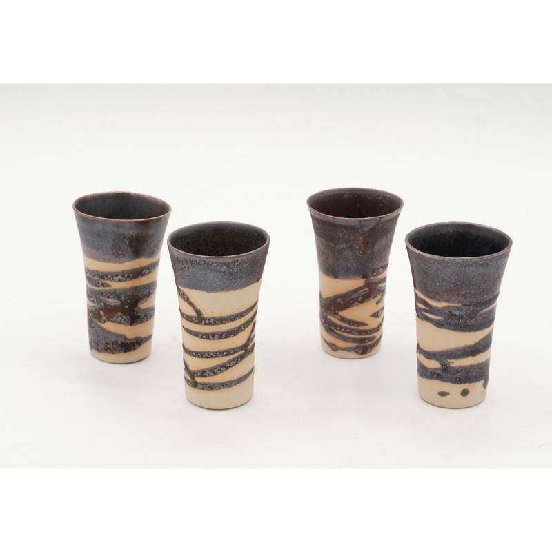 Set de 4 pièces (capacité 50 ml, grès émaillé, lavable en lave-vaisselle, sans danger pour les aliments). La collection "Sound of Colours" est née en 2017 pour répondre à la nécéssité très forte de créer une ligne dediée à la vie quotidienne dans laquelle exprimer l'essence de l'art céramique: fonctionnalité et art comme moyens de communication. La fonctionnalité a partiellement établi les formes et l'utilisation du grès comme matériel céramique et le message que je voulais communiquer était celui de ne pas oublier d'utiliser agréablement nos sens, qui sont les premiers interrupteurs de nos émotions. Les coulerurs sont une part essentielle de cette collection, en effet chaque modèle peut être choisi dans six couleurs différentes, des plus douces aux plus intenses. Les couleurs vibrent comme les sons de la musique. Les couleurs activent la vue, le tact sera chatouillé du contraste entre la rugosité du grès et la douceur de la glaçure, nôtre boisson ou nourriture enivreront l'odorat et le goût. Le son des couleurs et la sonorité du grès sont étonnement pour l'ouïe.