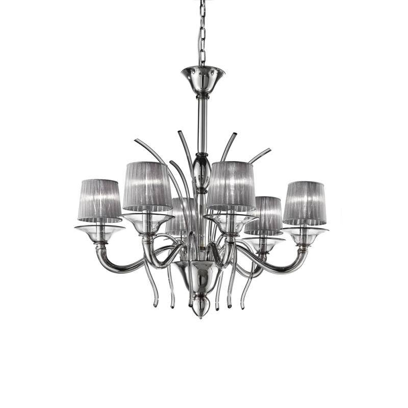 Chandelier moderne 6 lumières cristal avec effet miroir dans les branches et dans la base, fait entièrement à main avec les techniques du verre de Murano par les maîtres Gianni & Loris Signoretto. (VO 147/L/6)