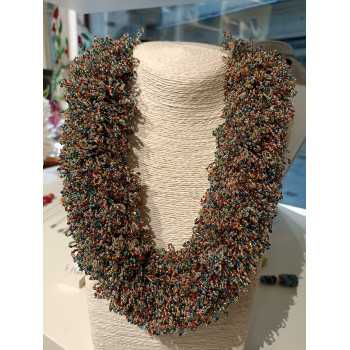Collana realizzata con micro perline in vetro di Murano. Il tempo di lavorazione/produzione di questa collana è di 23 giorni.