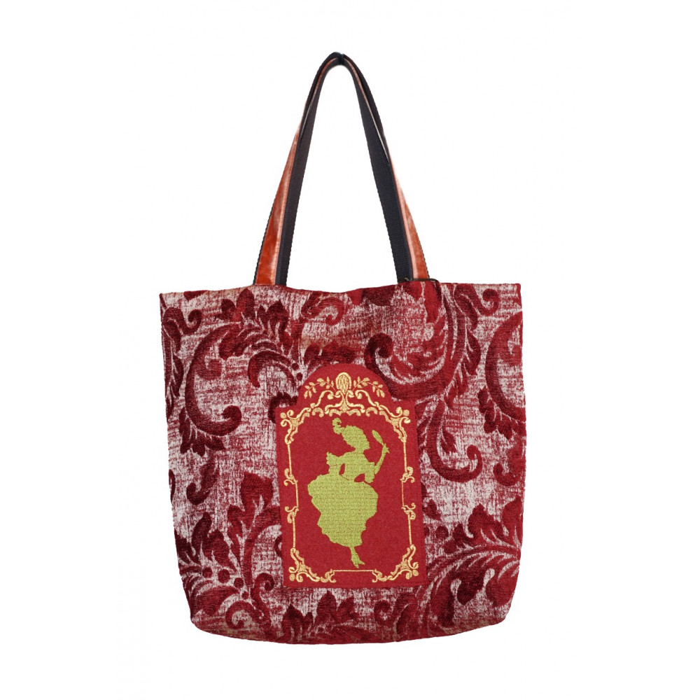Comoda shopping bag a spalla con interno a contrasto dotato di pratica taschina portaoggetti . Ricamo esclusivo. Realizzata 60% in cotone, 40% altre fibre