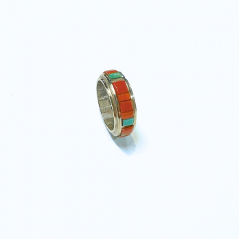 Anello fatto a mano in argento 925 con mosaico di corallo e turchese