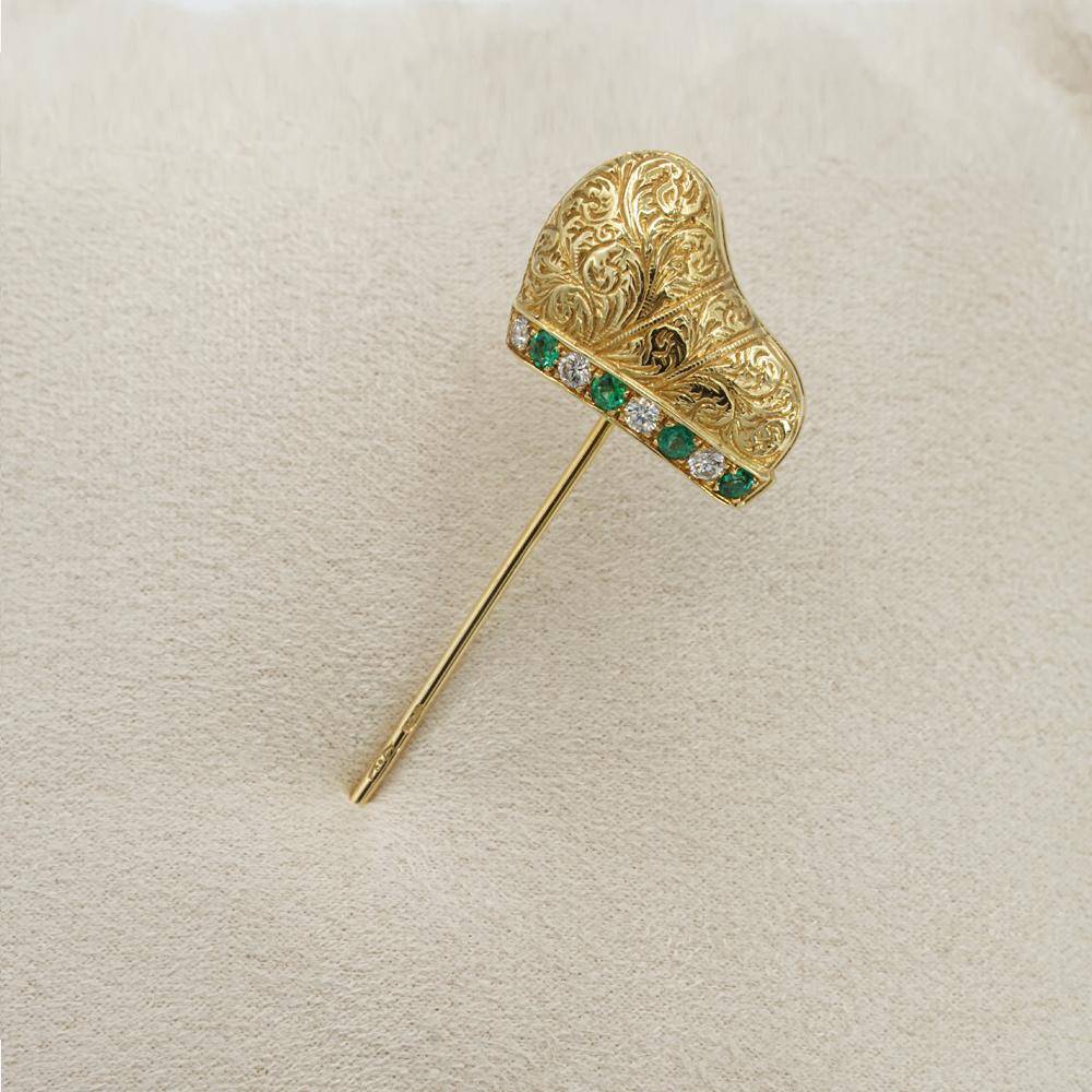 oro giallo 5,90 gr., diamanti 0,15 ct., smeraldi 0,14 ct.