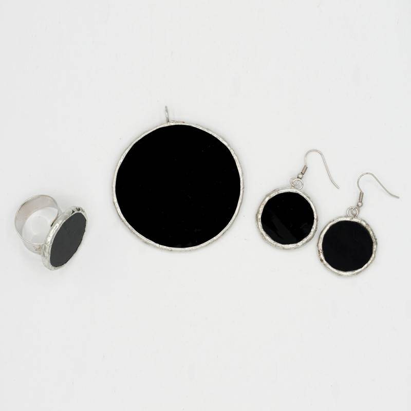 Комплект из кулона, серег и кольца Tiffany (стекло и олово)