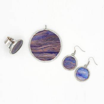 Комплект из кулона, серег и кольца Tiffany (стекло и олово)