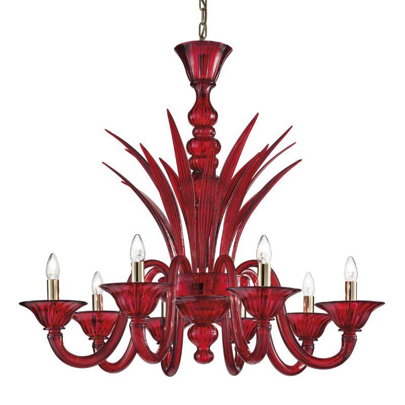 Современная 8-рожковая красная люстра, модная и гармоничная, полностью ручная работа мастеров Джанни и Лорис Синьоретто с использованием техники муранского стекла