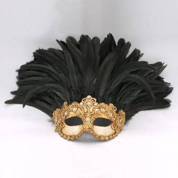 макраме/кракелированная бумага маше с сусальным золотом и натуральным черным пером* (*соответствует Вашингтонской конвенции)