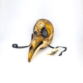 Маска украшена музыкальной бумагой, сусальным золотом, лепными рельефами и акриловыми красками.