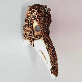 Маска из папье-маше, уникальный экземпляр, украшенная аппликациями, взятыми с оригинальных фризов, покрыта сусальным золотом и отделана кристаллами