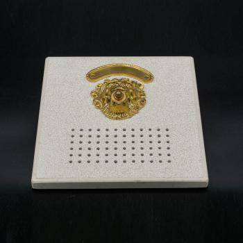 Мраморная плита с кустарниковой обработкой и полированным корделином в комплекте с отверстиями для домофона, полукруглой плавкой латунной плакеткой, обработанной, львиным колокольчиком в комплекте с латунной кнопкой