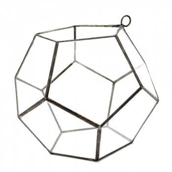 Додекаэдр в тиффани (стекло и олово) с одной открытой стороной, который можно использовать как теплицу для растений, но также как держатель для предметов или, пустой, как декоративный объект, его можно поставить на плоскость или повесить.