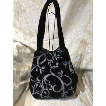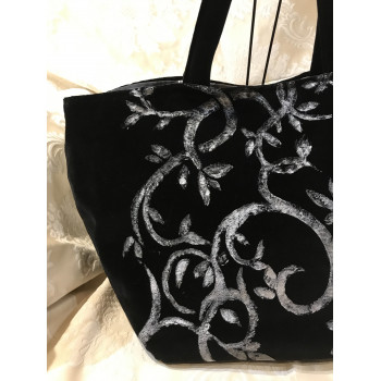 Lined inside with Art Nouveau brocade, inside pocket with zip, trimmed in passementerie, with tassel and Venetian pearl. Crossed closure with 4 filigree buttons. Hand wash in warm water.