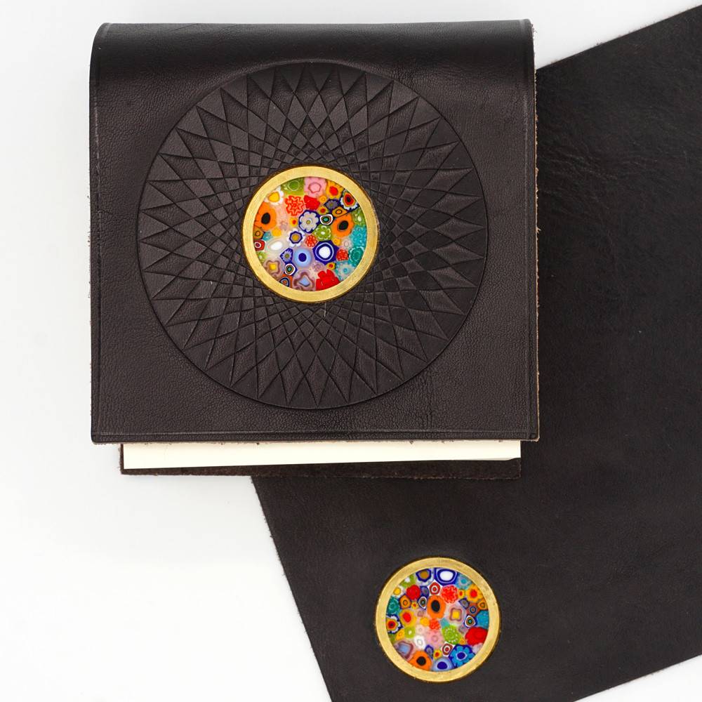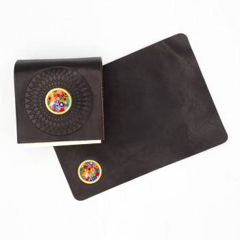 Кожаный коврик для мыши со встроенной Мурриной. Кожаный держатель для блокнота с вставкой "Муррина". На блокноте изображена Венеция.