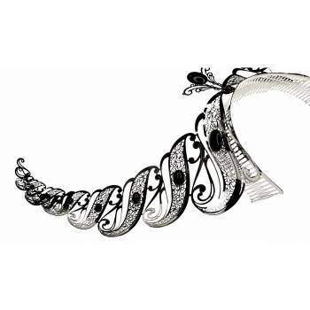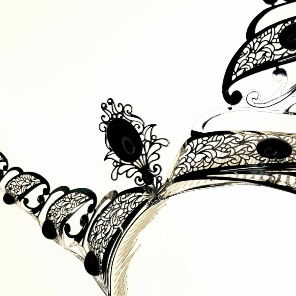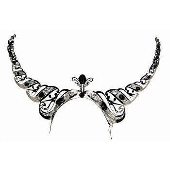 头饰完全由手工制作,是一件独特的作品。铜质底座。Cabuchon石和施华洛世奇水晶(由Daniel Swarovski & Co.生产的部件)。该头饰的设计是通过一个舒适和安全的头带大小的丝带梳子,轻松地应用于你的发型。是装饰和完善服装的理想选择,也适合演员、歌手或舞者的表演使用。