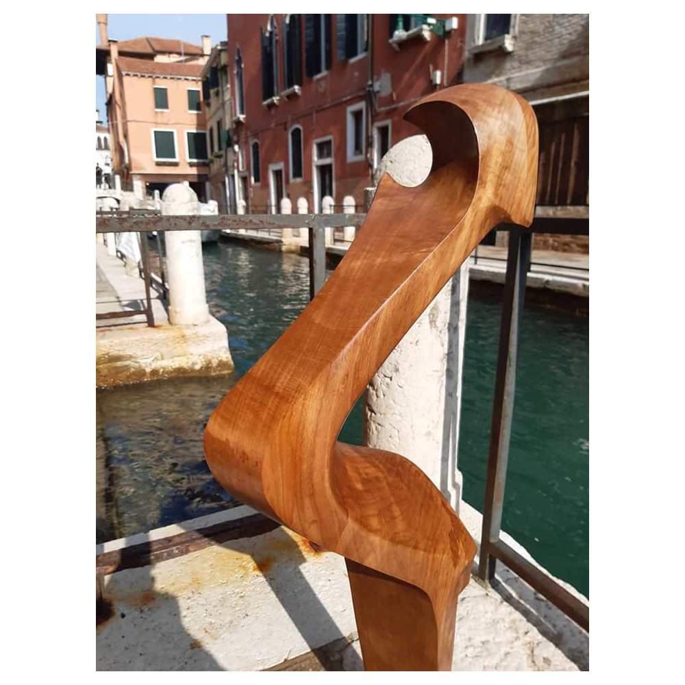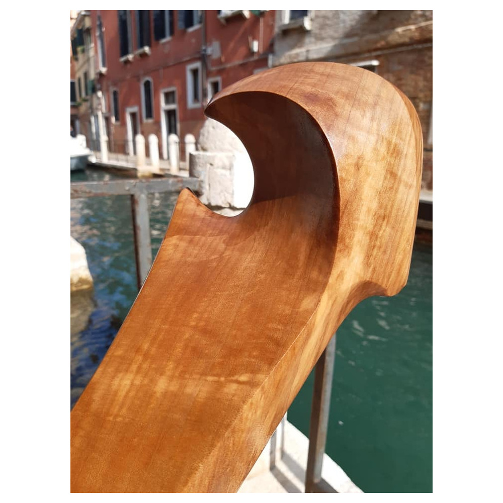 贡多拉船尾的船桨架 (Fòrcola)。由梨木制成,用桨手者传统的工具手工雕刻而成。它是一个独特的模型,但几乎可以用手工复制出相同的模型。