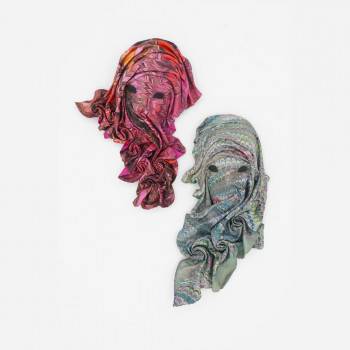 两个纸塑面具上覆盖着手工大理石花纹皮革,独特的产品